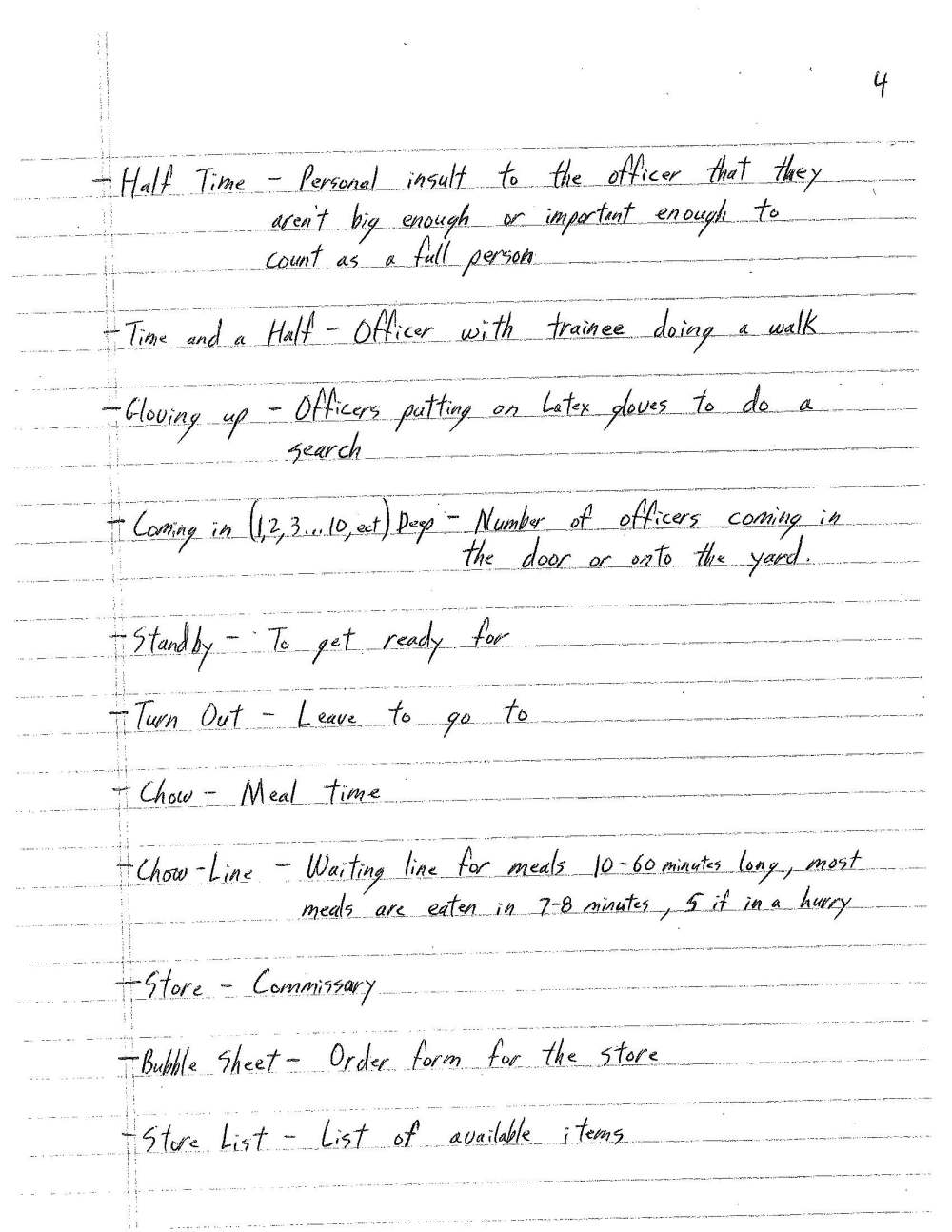 These terms, and some of the of other items that we’ll showcase here as we unveil this blog, carry a bit more weight in my eyes as they literally are his words, written in his own handwriting. They’re what he said, how he talked, his correspondence with other inmates to navigate his world inside camp. They are the definition of his time in prison, literally as he saw it.