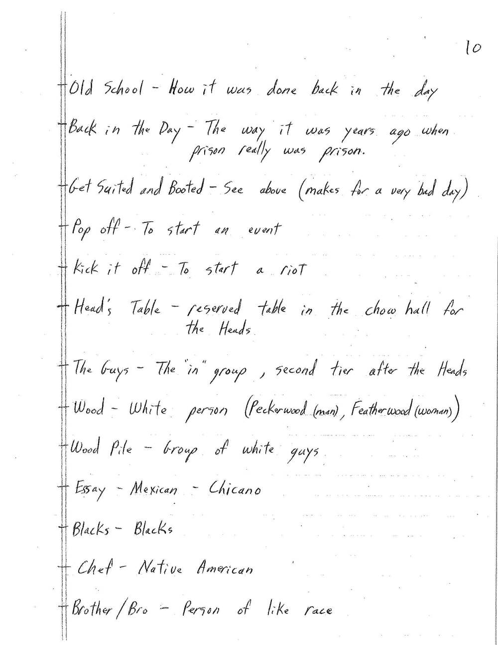 The following are terms you may come across from time to time in this blog. They are not all words I would use, and actually, some I would never say out loud. A few I don’t even like saying in my mind, although I must admit I do have some songs on my phone by artists who use them. These are words that inmates use, words that Craig used and encountered on a near-daily basis while locked up.