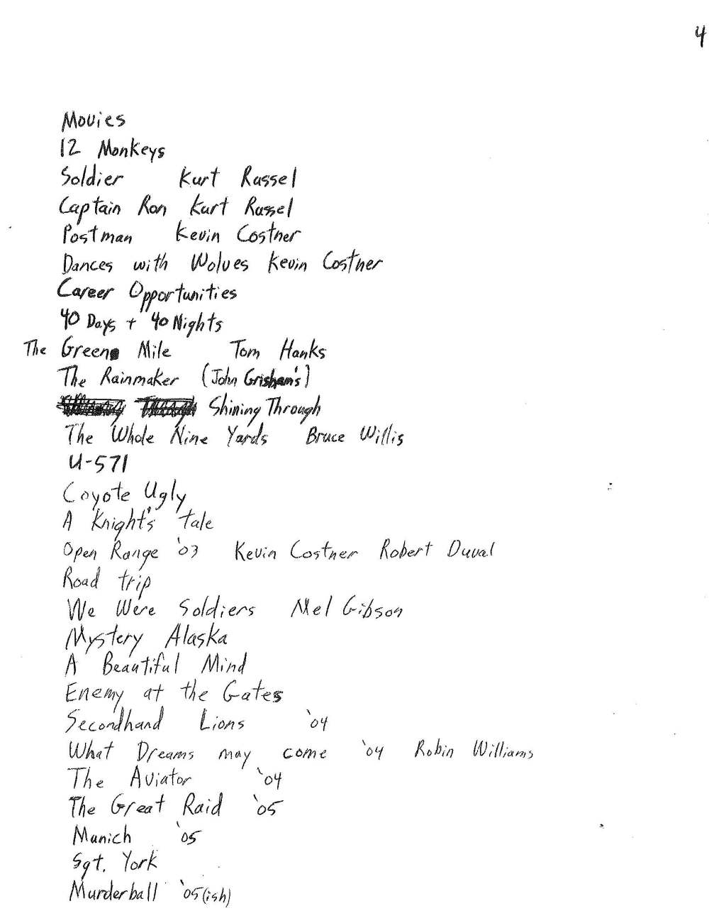 This may be the ultimate Netflix and chill list, minus the chill and most of it was pre-Netflix. But, you get my drift. With so much time on his hands, Craig was free to watch a lot of movies over his stay on the farm.